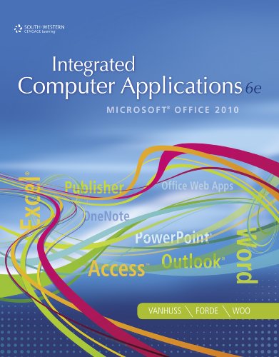 INTEGRATED COMPUTER APPLICATIONS 6E challenges students to combine all of the tools of Microsoft Office 2010 plus web computing with decision-making and formatting using real-world projects. Each module includes 5 to 8 lessons and two integrated projects emphasizing the basic and commonly-used advanced skills required in the workplace. Numerous projects throughout the text integrate new skills with prior application skills that incorporate Word, Excel, PowerPoint, Access, Publisher, OneNote, and Web computing with Office Web Apps.Kindle textbooks are functionally equivalent to the print textbook. In some cases, individual items such as ancillary images or multimedia have been removed for digital delivery due to rights restrictions.Customer Reviews